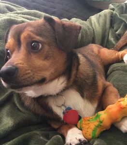 We adopted Spencer, age 10, last September. He was a huge change from our dog that we had previously. Spencer had what I would call 'impressive' separation anxiety and being left alone was a complete end of the world experience for him. He was able to keep running around the house for hours. Amanda showed us many ways to help Spencer gain confidence. We worked with toys and treats and practiced a lot of self control. This is something he's never really had, I'm guessing, as he has no teeth. They were removed because they were so worn down, probably from trying to escape being in a cage.