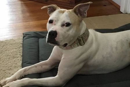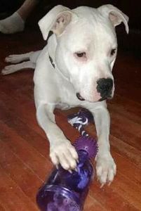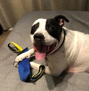 When I adopted Otis from Biggies Bullies he was approximately 1.5 years of age. Otis is a pit bull mix who weighs approximately 60 pounds, is full of life, energy, snuggles, and love. He was found on the streets and picked up by animal control. Not knowing his background and no signs of any type of obedience, Amanda with Spotted Paw Behavioral Services, LLC came to the rescue!!