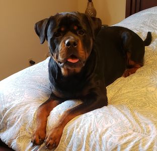 We have a 115- pound one year old Rottweiler, named Bear. As he will continue to grow we needed help to stop his nipping, mouthing, and jumping. He is a very friendly and loving dog. He would get very excited when meeting new people and would jump on them for attention.